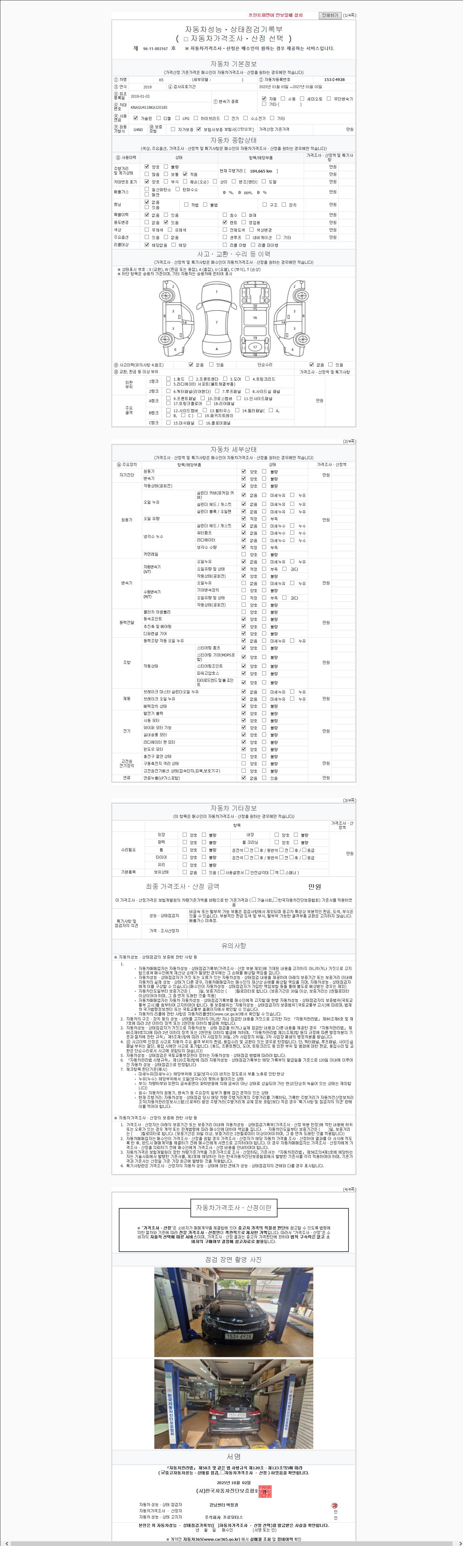 | 주행거리 | 104,665 km | 차량번호 | 153수4928 |