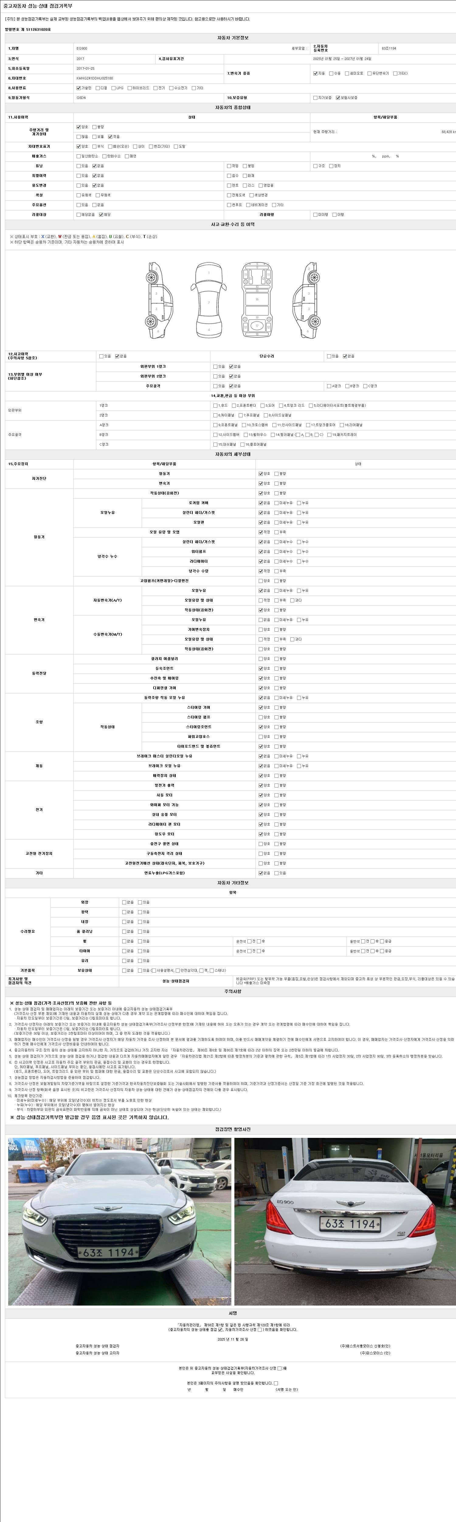 2. 차량 등록증이나 성능점검지 등을 상담자에게 요청및 확인하시고 사전에 미리 점검 하시기를 권유드립니다.
