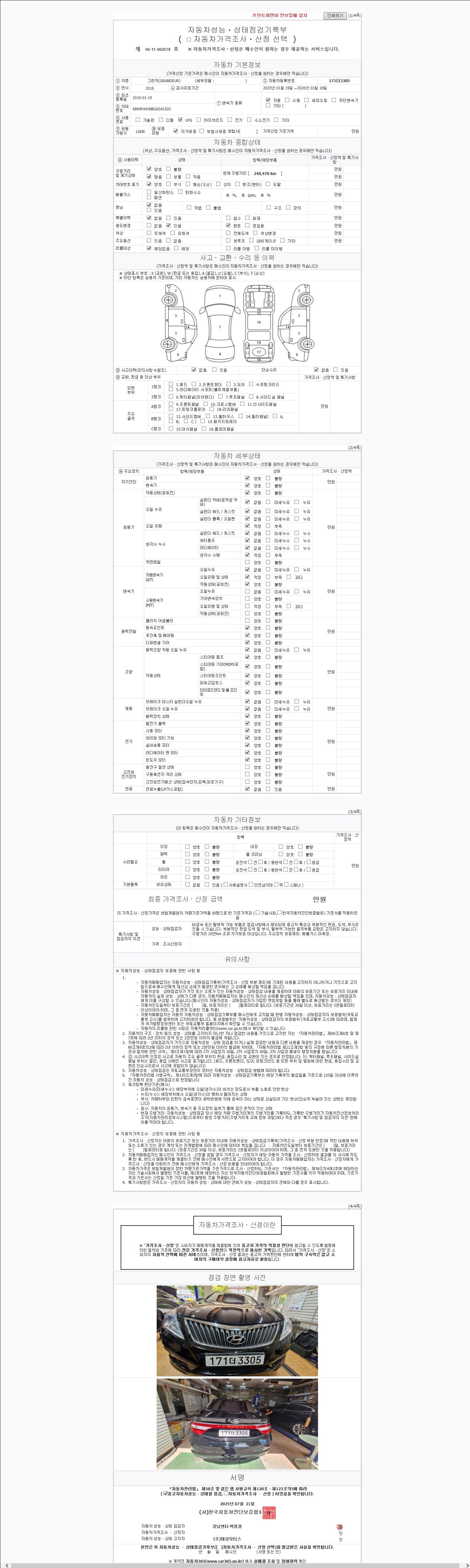 2. 차량 등록증이나 성능점검지 등을 상담자에게 요청및 확인하시고 사전에 미리 점검 하시기를 권유드립니다.