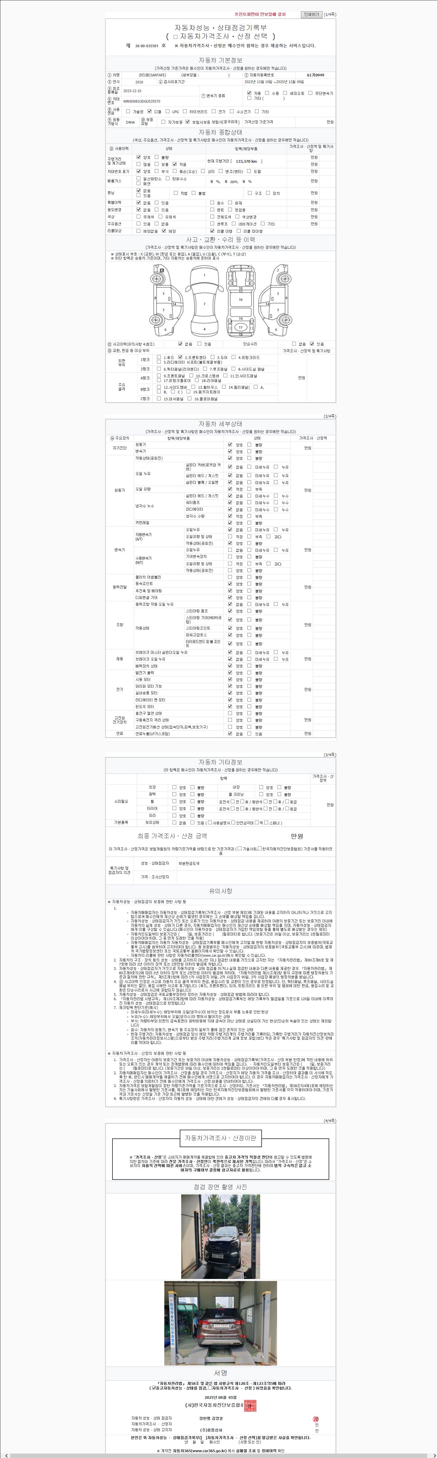 2. 차량 등록증이나 성능점검지 등을 상담자에게 요청및 확인하시고 사전에 미리 점검 하시기를 권유드립니다.