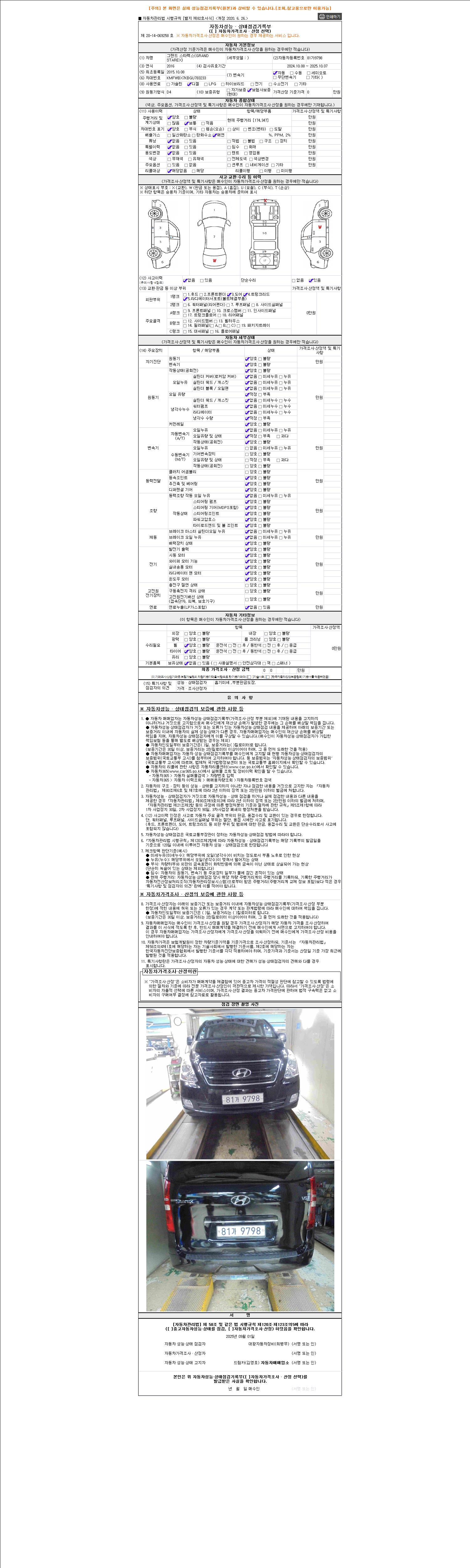 2. 차량 등록증이나 성능점검지 등을 상담자에게 요청및 확인하시고 사전에 미리 점검 하시기를 권유드립니다.