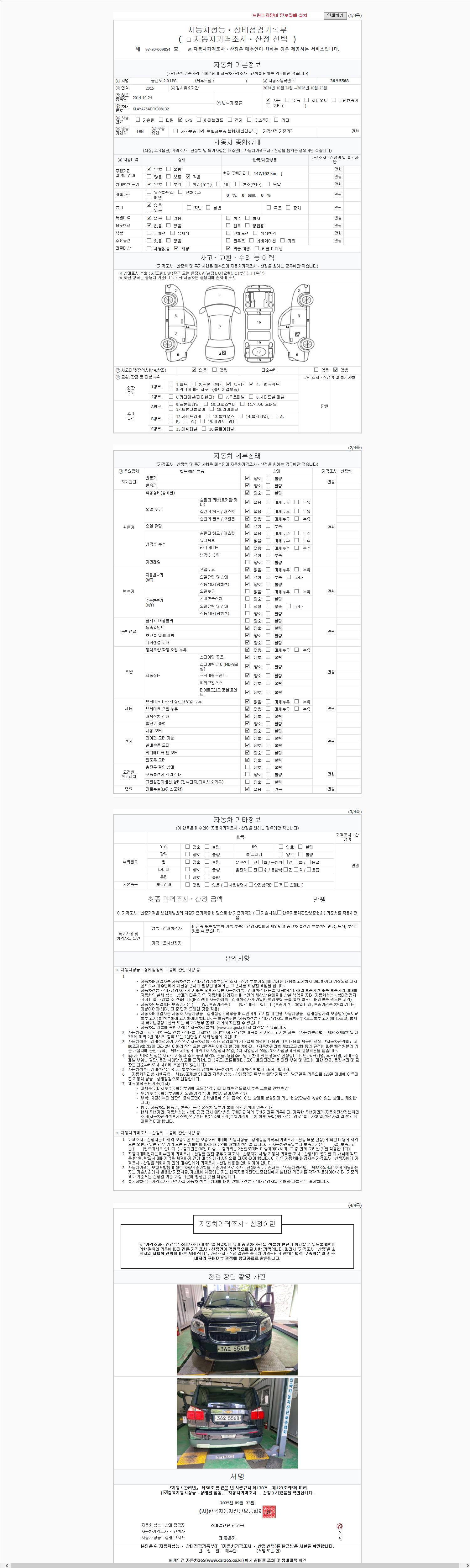 사고유무 성능기록부 참조 제시번호 제 2025130674 호