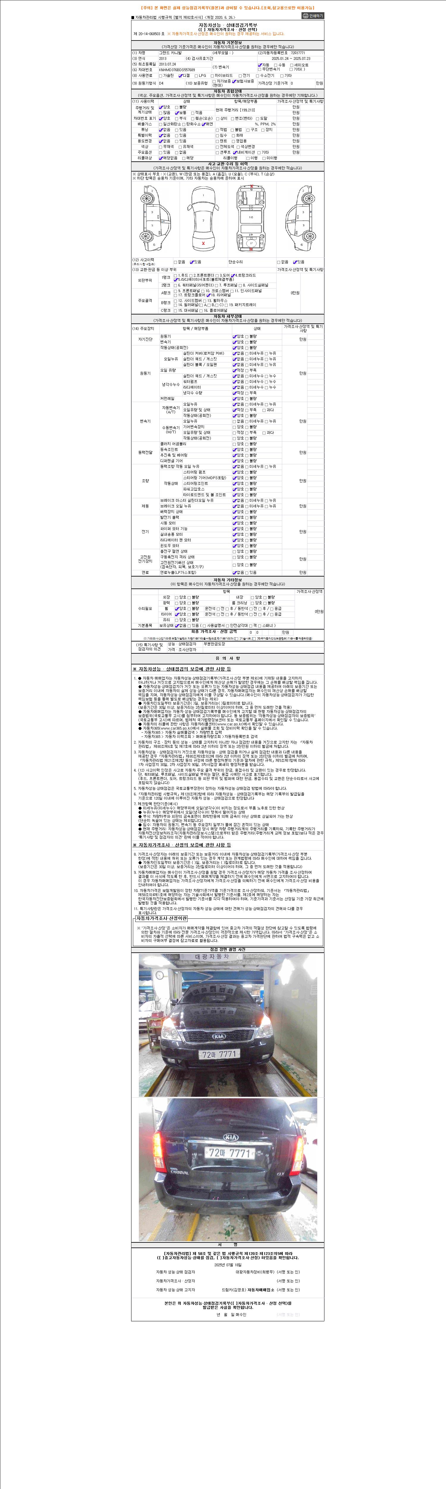 2. 차량 등록증이나 성능점검지 등을 상담자에게 요청및 확인하시고 사전에 미리 점검 하시기를 권유드립니다.
