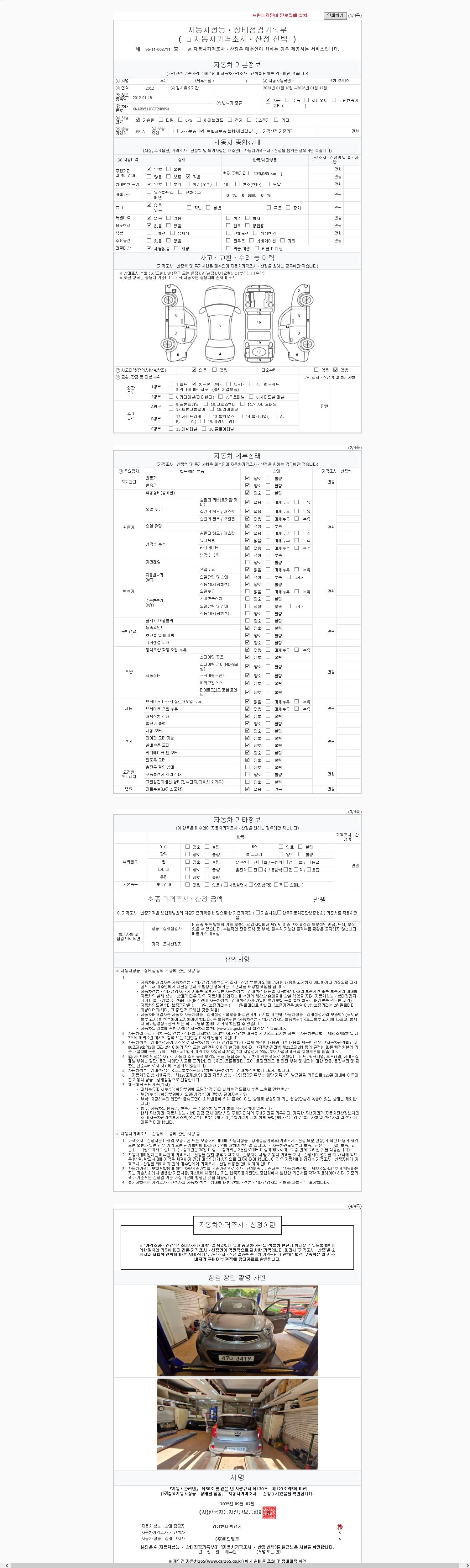 | 주행거리 | 170,085 km | 차량번호 | 47나3419 |
