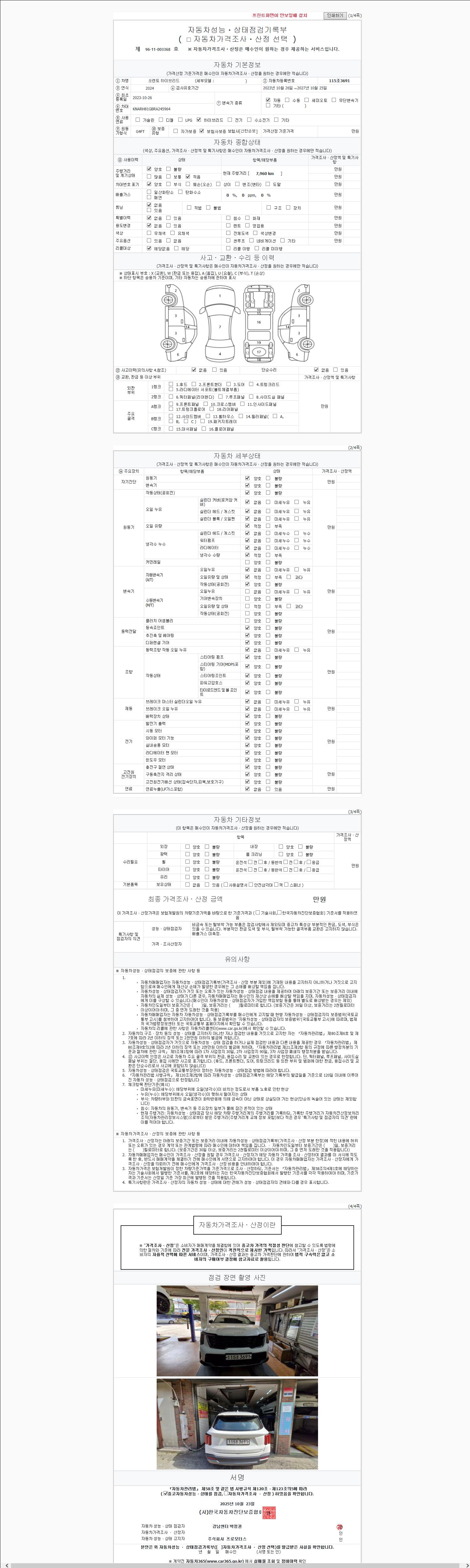2. 차량 등록증이나 성능점검지 등을 상담자에게 요청및 확인하시고 사전에 미리 점검 하시기를 권유드립니다.