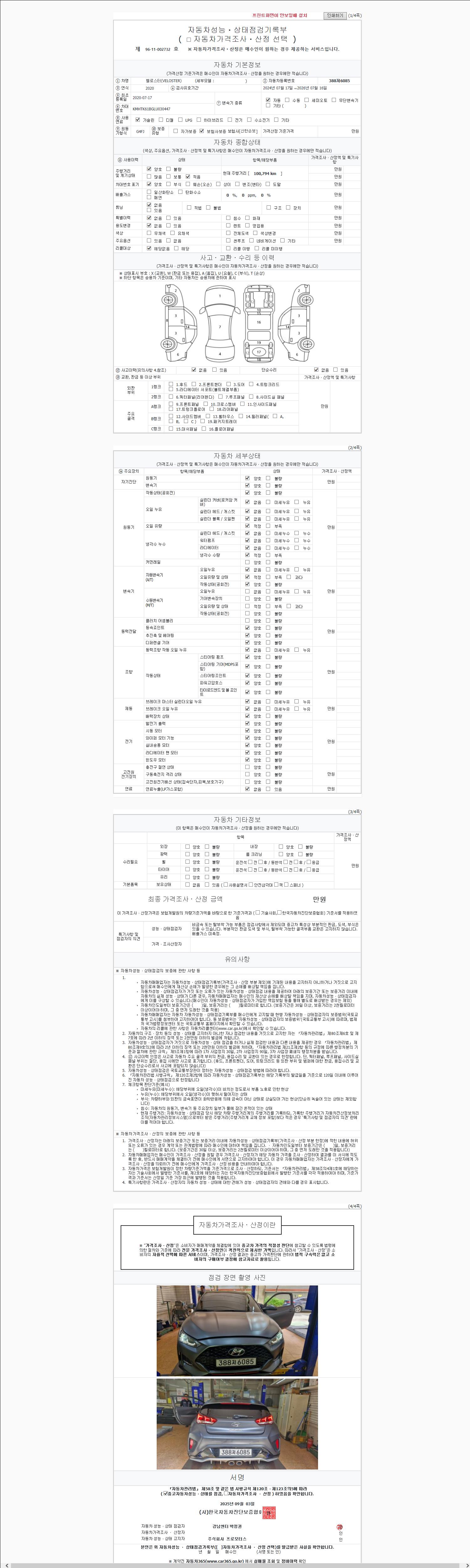 2. 차량 등록증이나 성능점검지 등을 상담자에게 요청및 확인하시고 사전에 미리 점검 하시기를 권유드립니다.