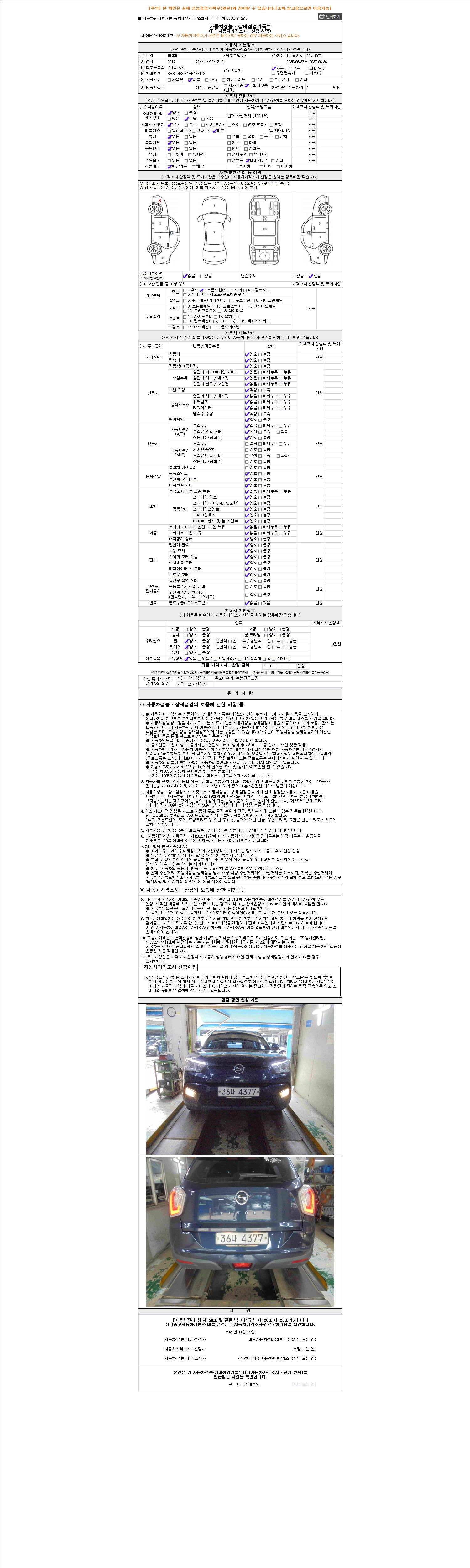2. 차량 등록증이나 성능점검지 등을 상담자에게 요청및 확인하시고 사전에 미리 점검 하시기를 권유드립니다.