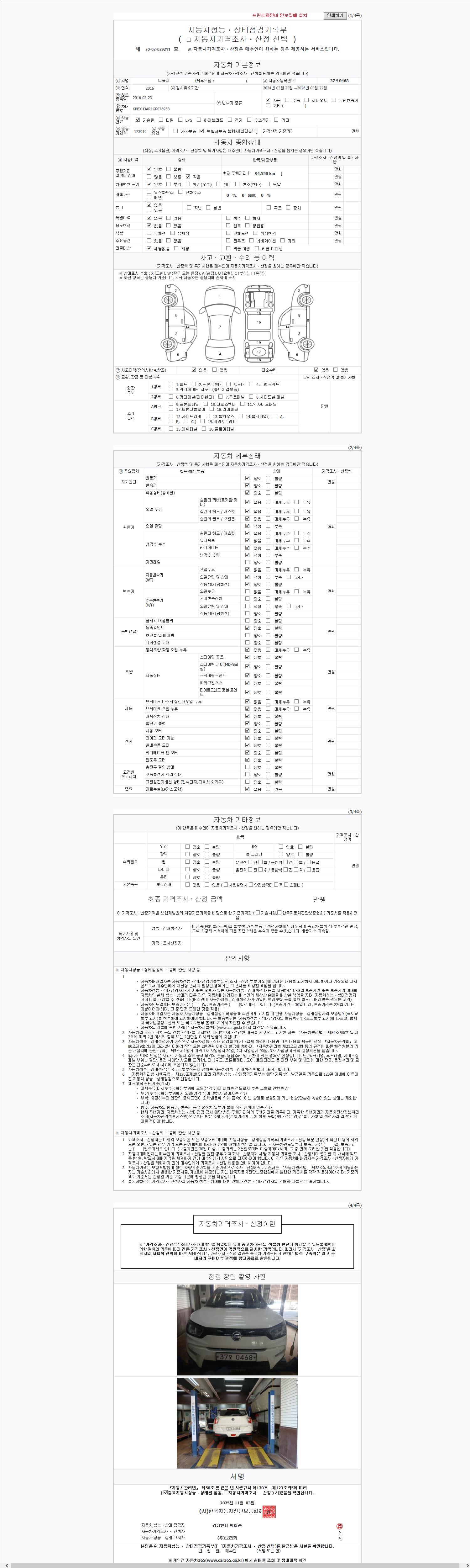 | 주행거리 | 94,550 km | 차량번호 | 37오0468 |