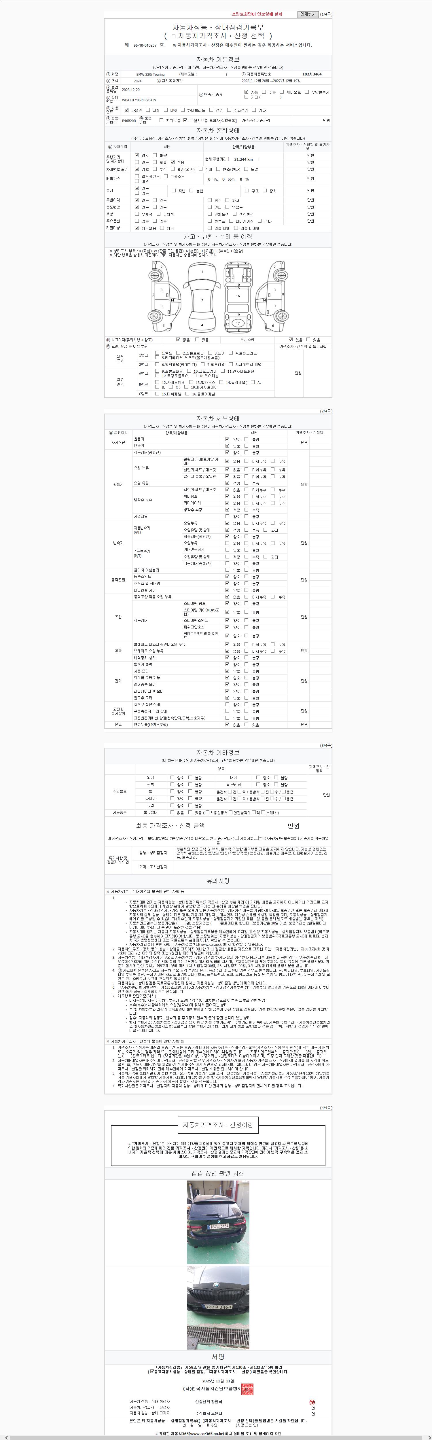 사고유무 성능기록부 참조 제시번호 제 2025152898 호