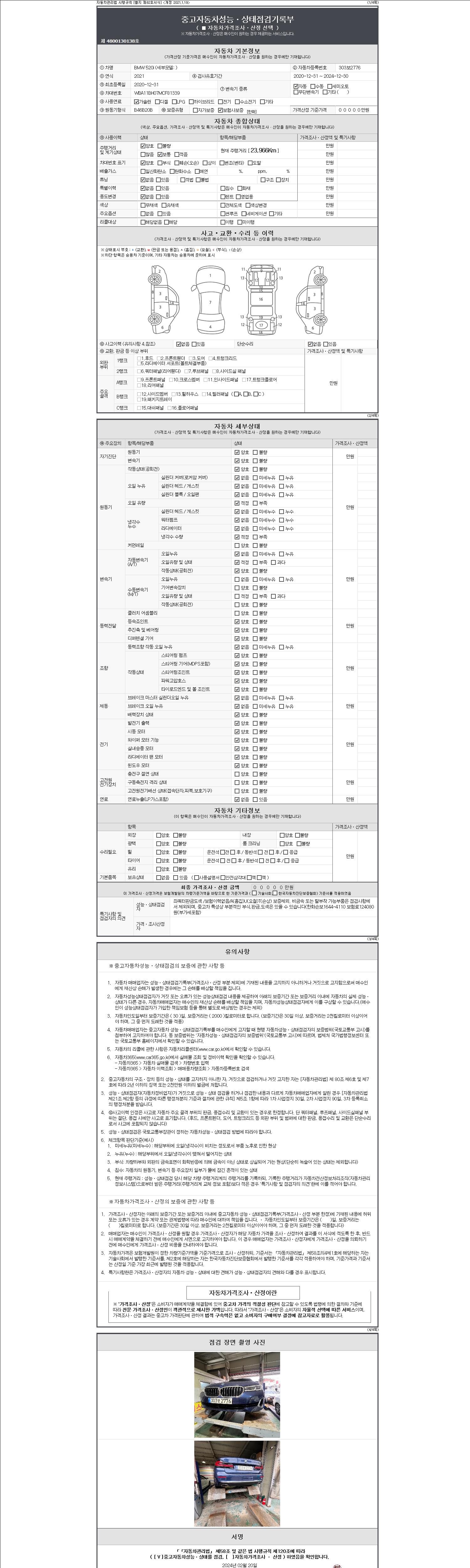 -중고자동차 매매업자를 통해 차량을 구입하실 경우 반드시 "중고자동차 성능, 상태점검 기록부"를 교뷰 받으셔야 하며, 매매업자는 반드시 의무 교부 하여야 압니다.