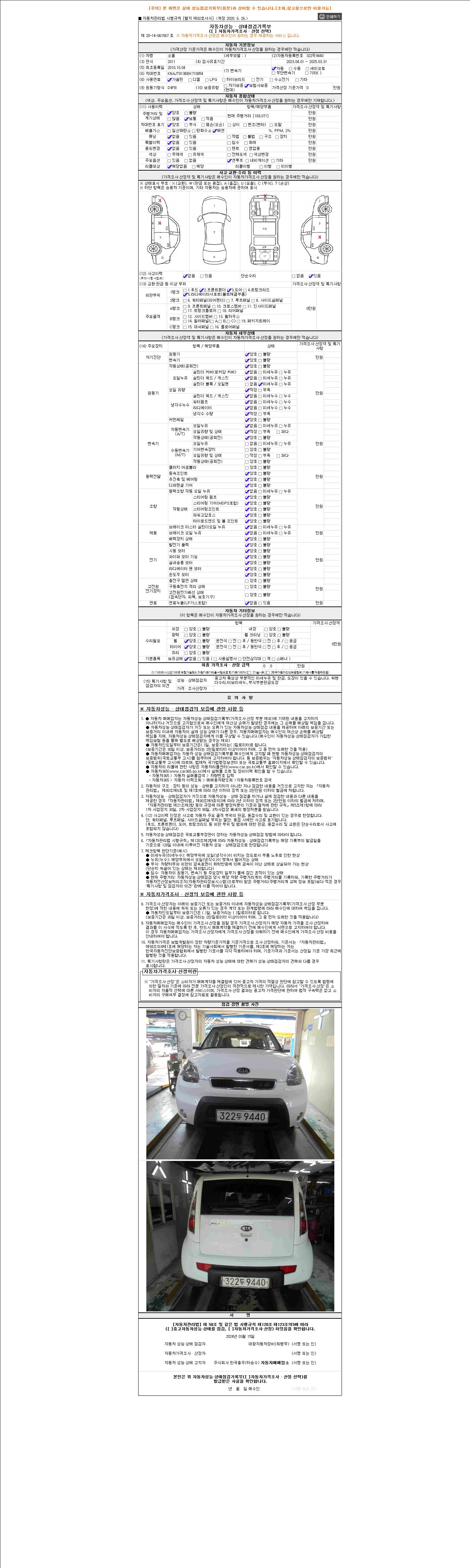 -중고자동차 매매업자를 통해 차량을 구입하실 경우 반드시 "중고자동차 성능, 상태점검 기록부"를 교뷰 받으셔야 하며, 매매업자는 반드시 의무 교부 하여야 압니다.