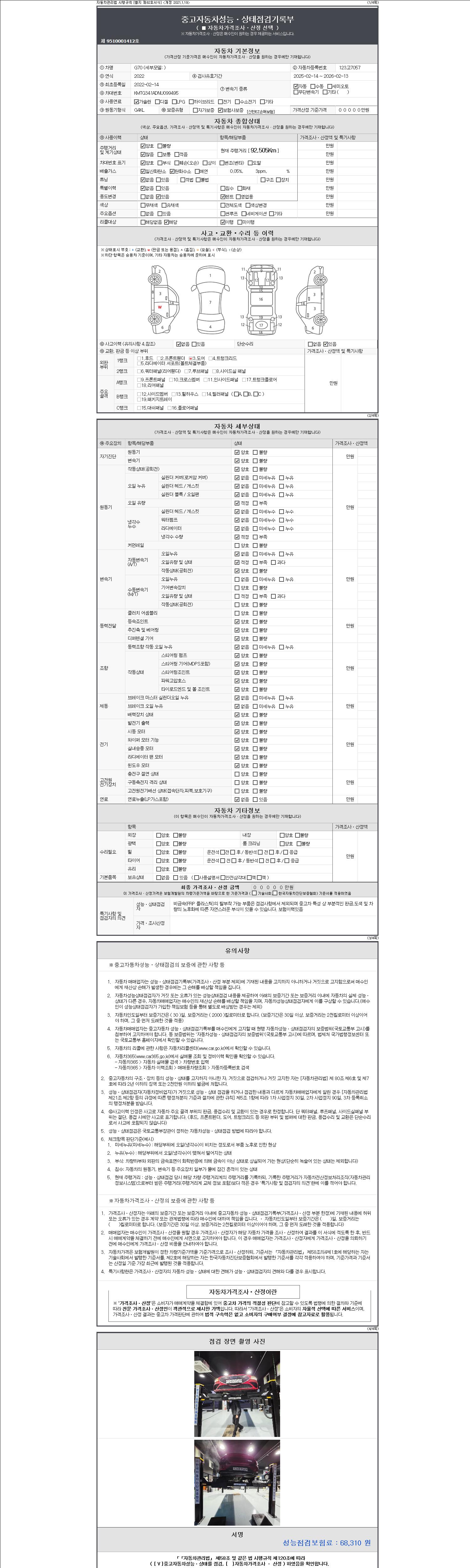 2. 차량 등록증이나 성능점검지 등을 상담자에게 요청및 확인하시고 사전에 미리 점검 하시기를 권유드립니다.