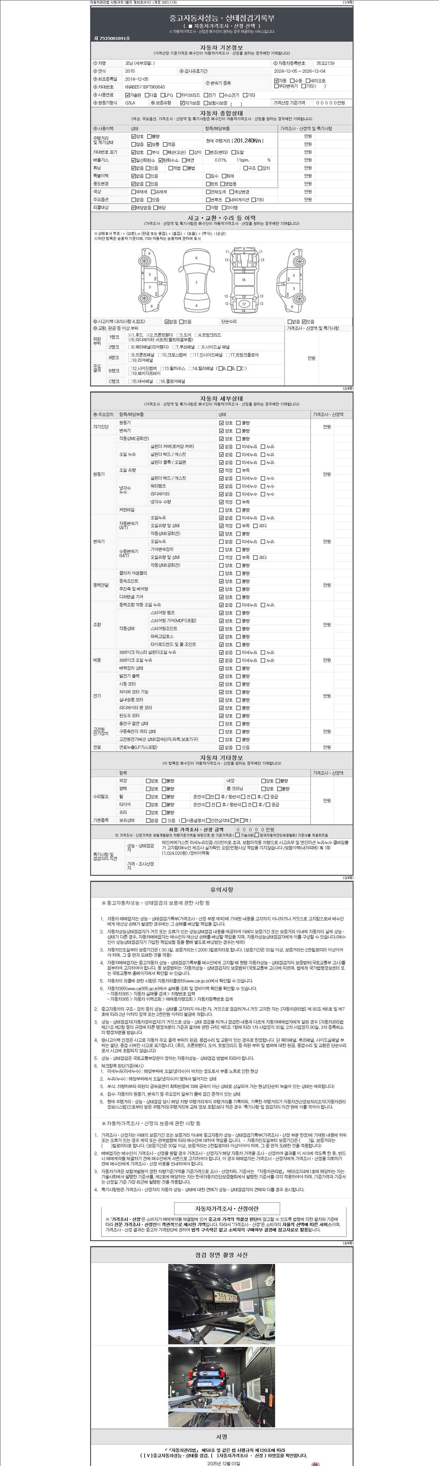 2. 차량 등록증이나 성능점검지 등을 상담자에게 요청및 확인하시고 사전에 미리 점검 하시기를 권유드립니다.