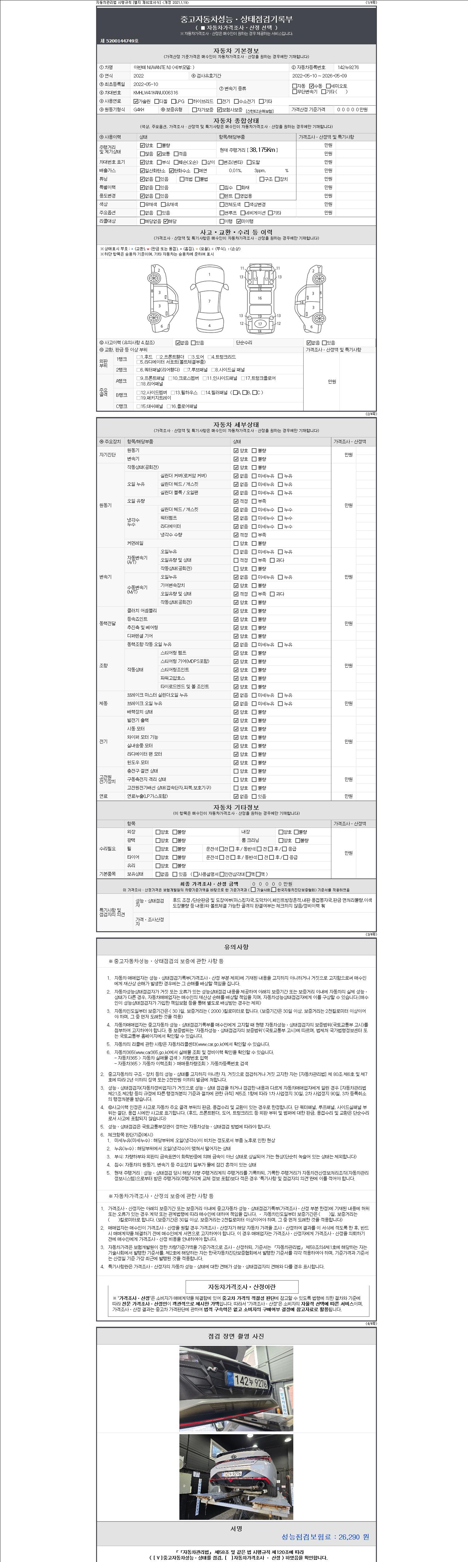 | 주행거리 | 38,175 km | 차량번호 | 142누9276 |