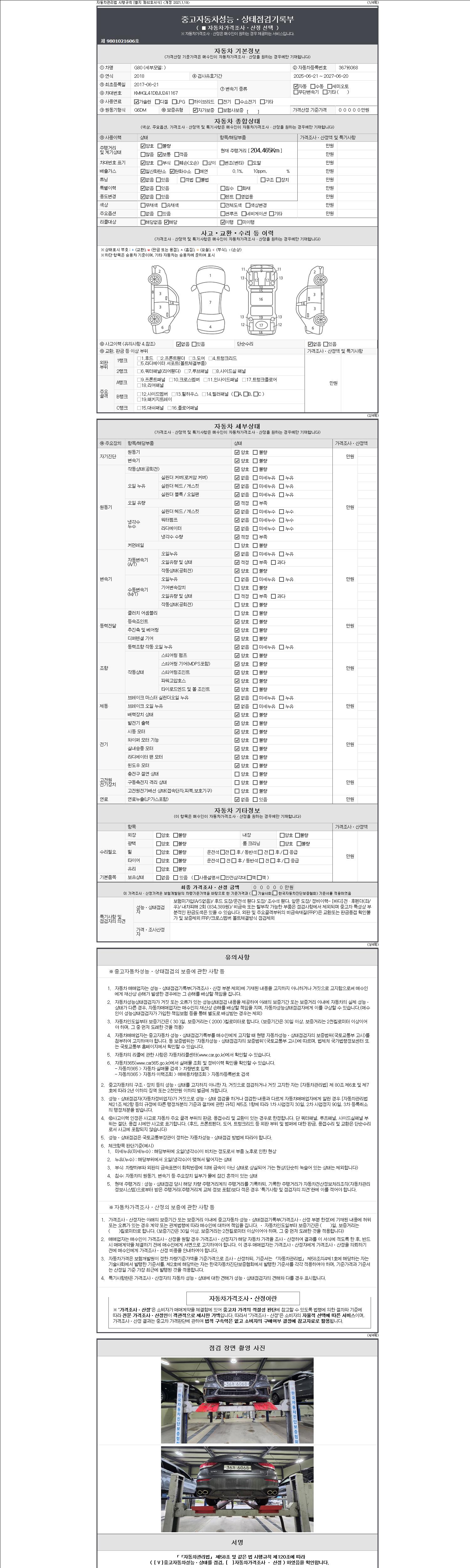 -중고자동차 매매업자를 통해 차량을 구입하실 경우 반드시 "중고자동차 성능, 상태점검 기록부"를 교뷰 받으셔야 하며, 매매업자는 반드시 의무 교부 하여야 압니다.