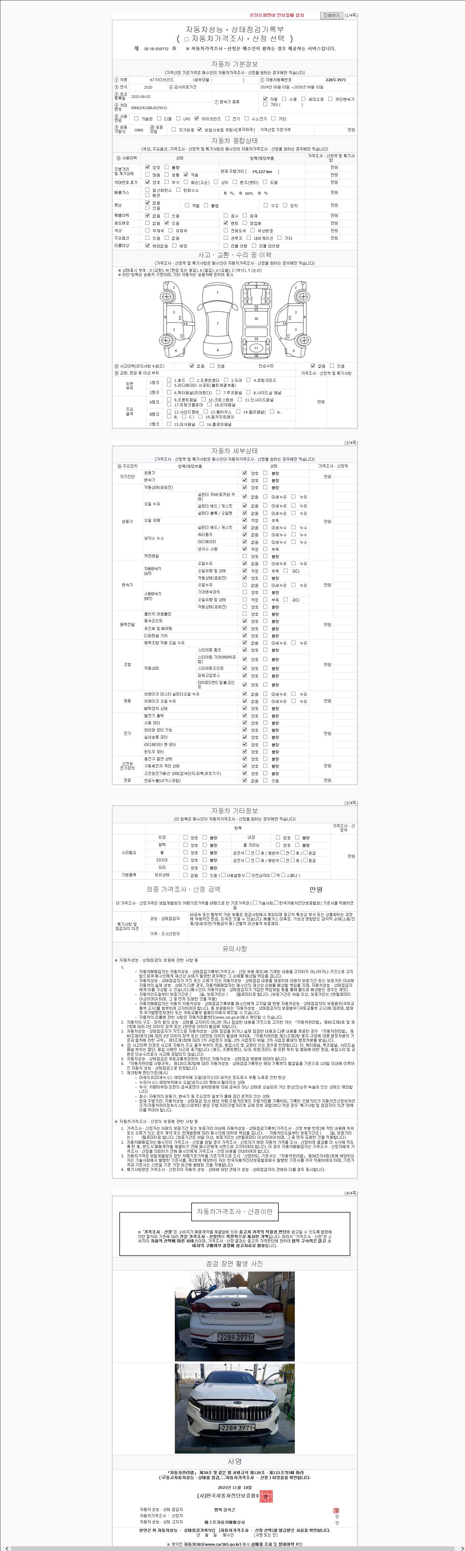 | 주행거리 | 74,227 km | 차량번호 | 228두3971 |