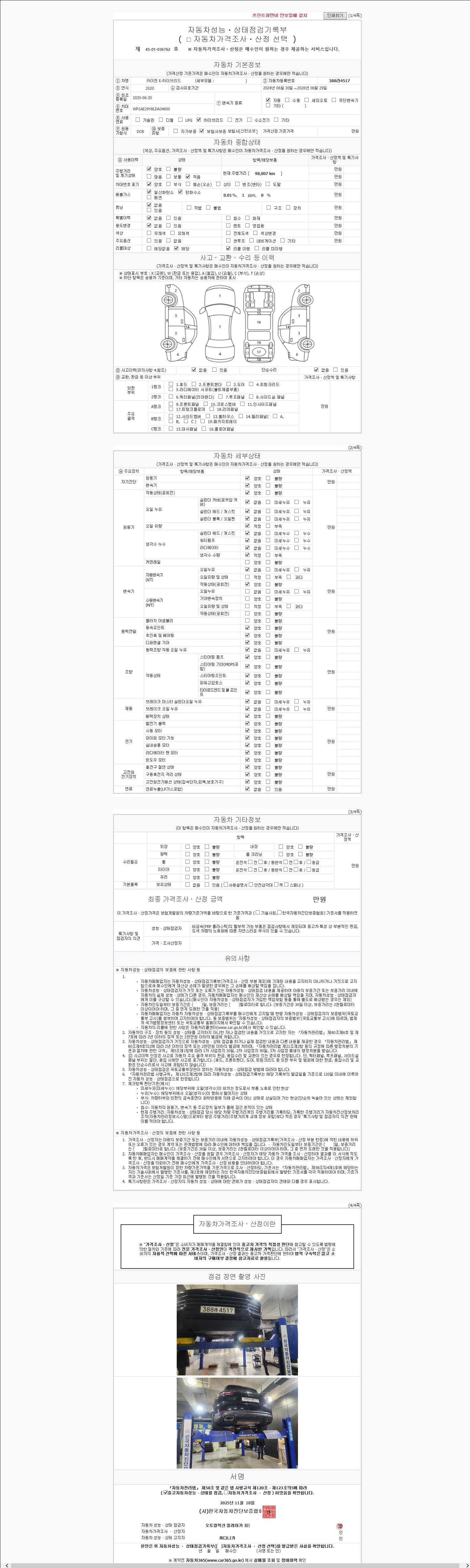 | 주행거리 | 98,007 km | 차량번호 | 388라4517 |
