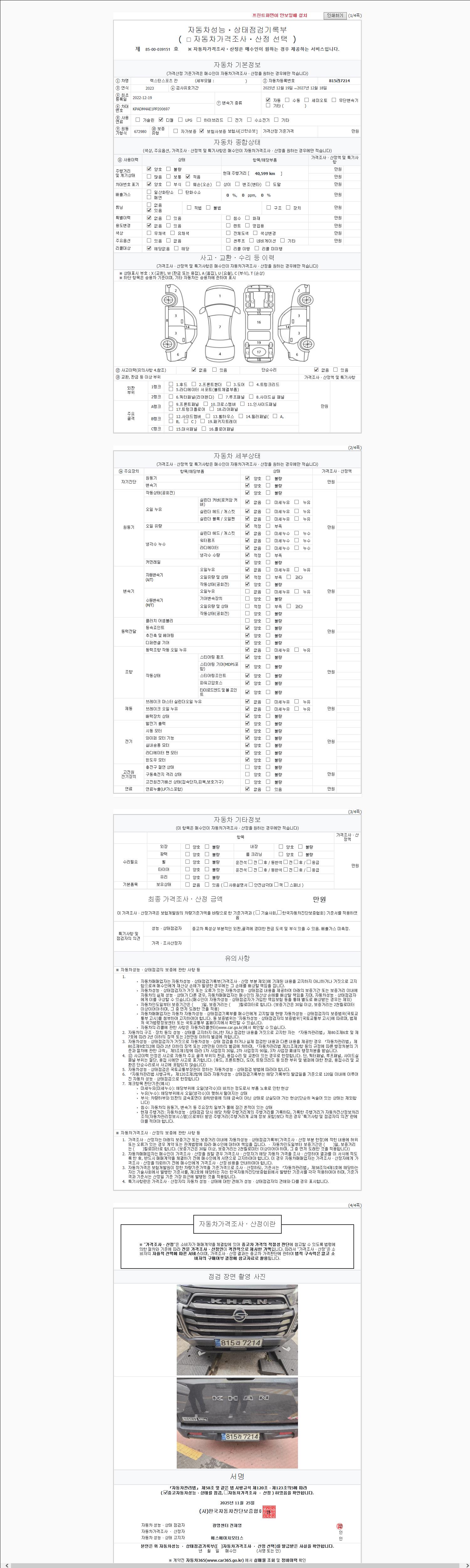 2. 차량 등록증이나 성능점검지 등을 상담자에게 요청및 확인하시고 사전에 미리 점검 하시기를 권유드립니다.