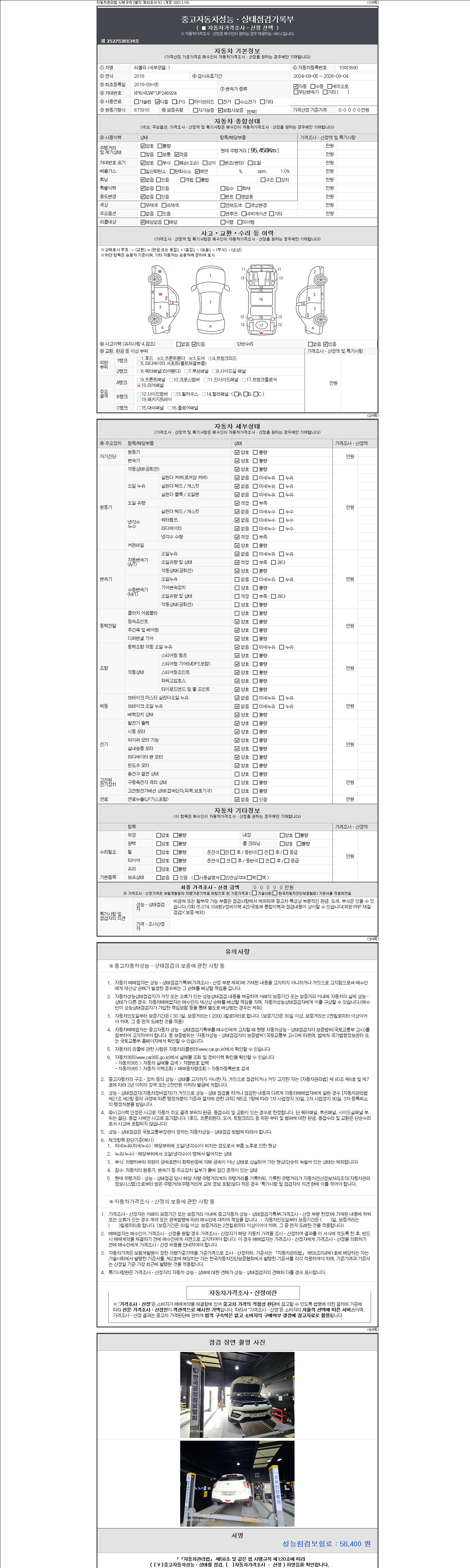 2. 차량 등록증이나 성능점검지 등을 상담자에게 요청및 확인하시고 사전에 미리 점검 하시기를 권유드립니다.
