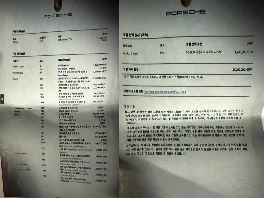포르쉐 718 718 박스터 (16년~) 2.5 GTS |