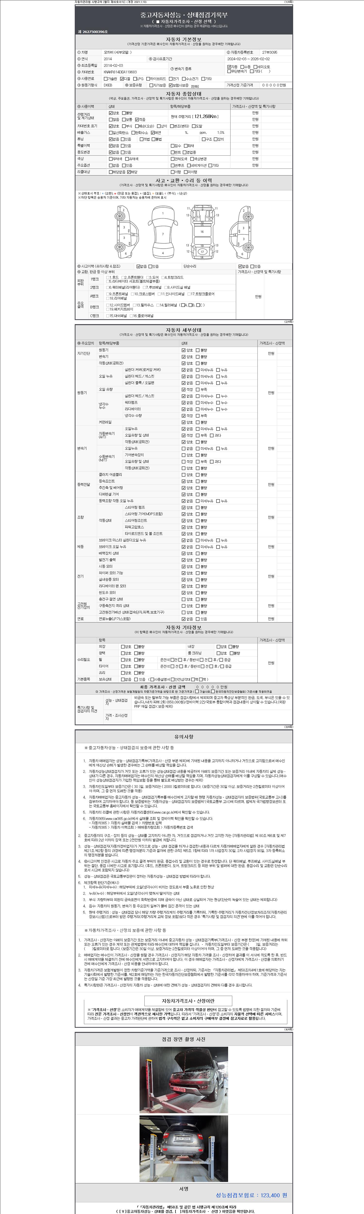 2. 차량 등록증이나 성능점검지 등을 상담자에게 요청및 확인하시고 사전에 미리 점검 하시기를 권유드립니다.