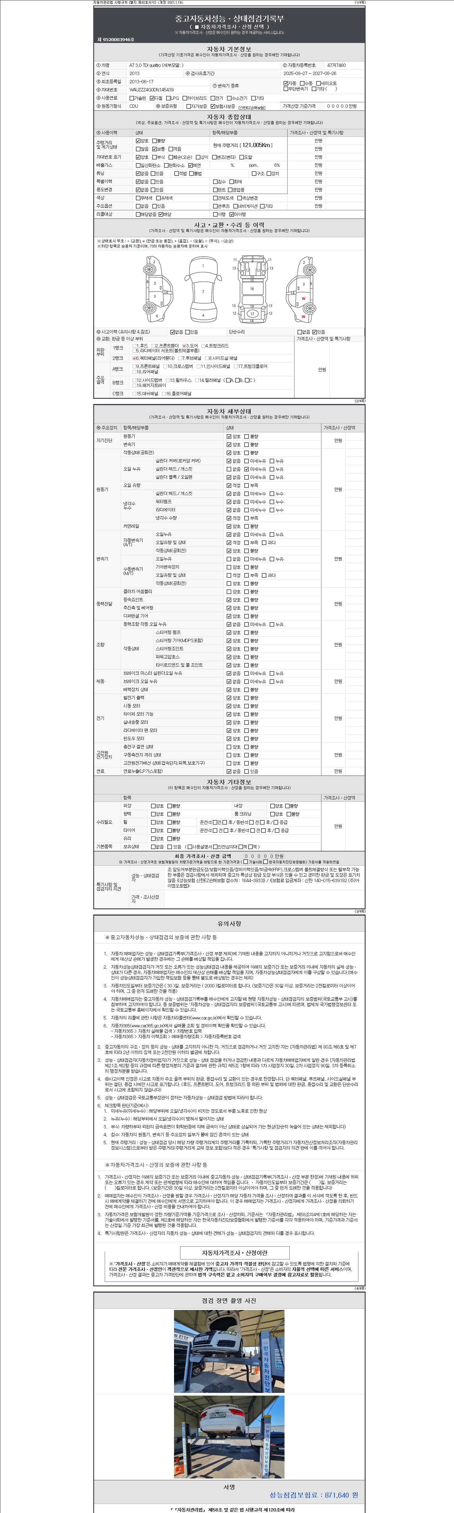 2. 차량 등록증이나 성능점검지 등을 상담자에게 요청및 확인하시고 사전에 미리 점검 하시기를 권유드립니다.