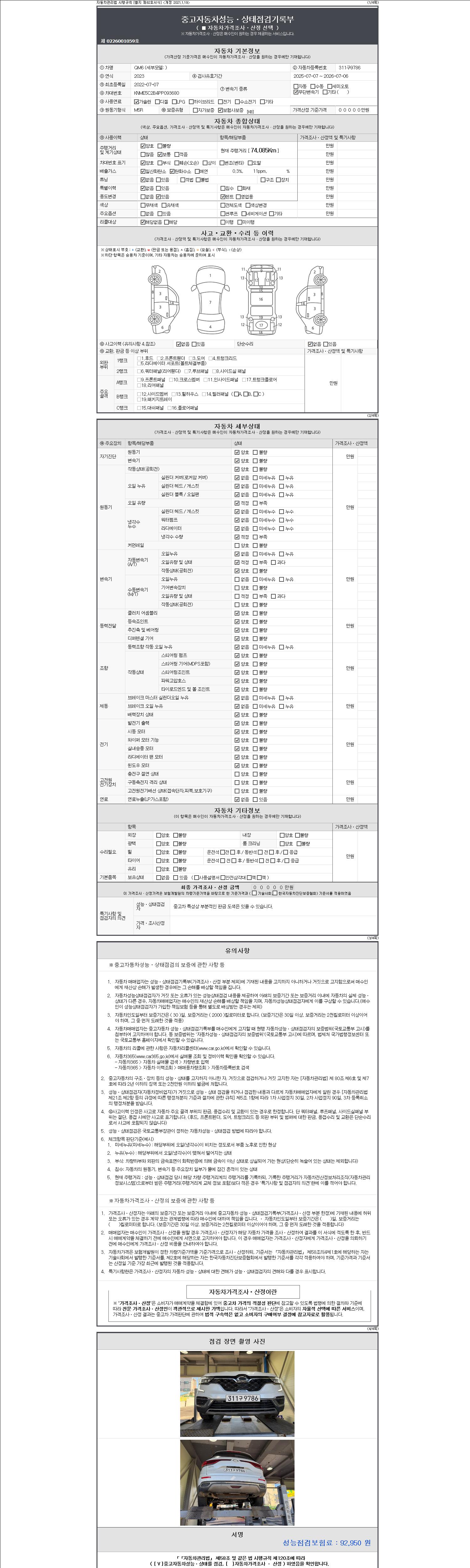 2. 차량 등록증이나 성능점검지 등을 상담자에게 요청및 확인하시고 사전에 미리 점검 하시기를 권유드립니다.