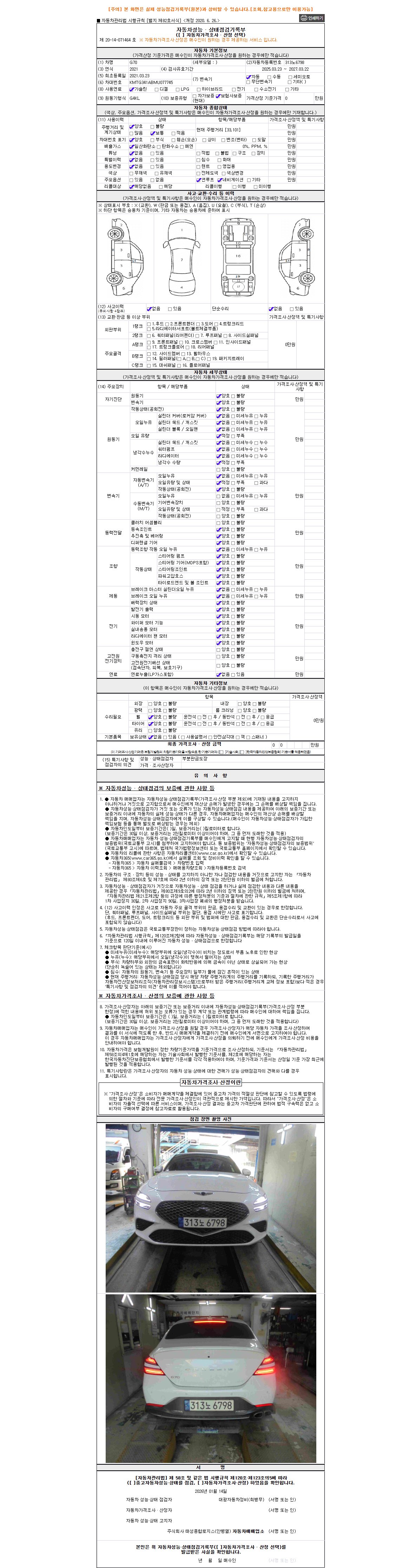 2. 차량 등록증이나 성능점검지 등을 상담자에게 요청및 확인하시고 사전에 미리 점검 하시기를 권유드립니다.