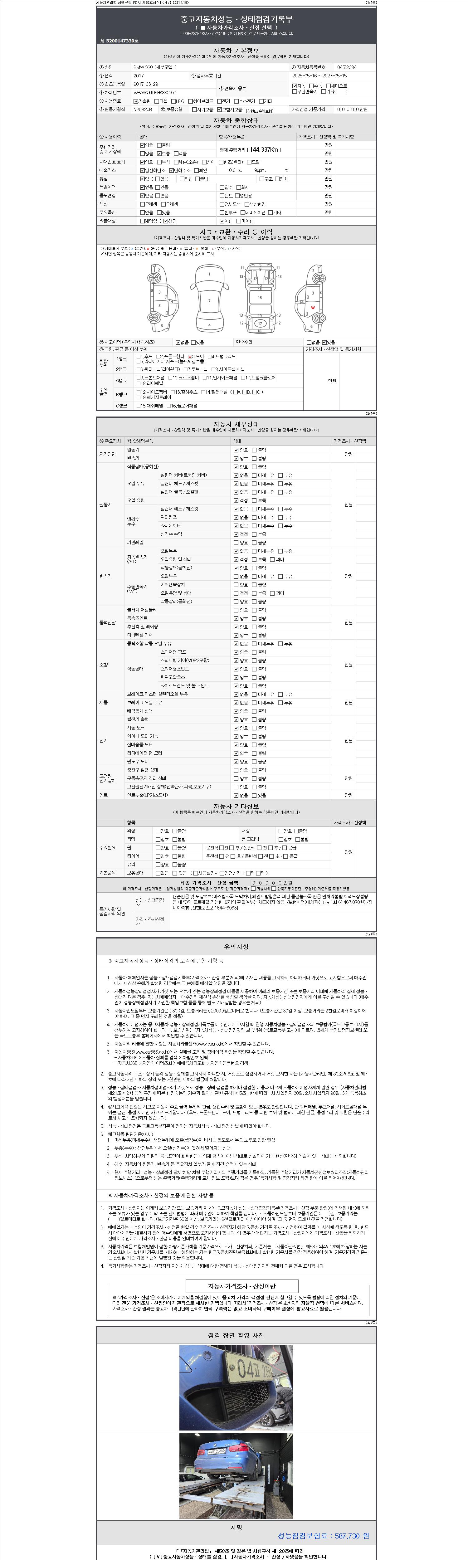 2. 차량 등록증이나 성능점검지 등을 상담자에게 요청및 확인하시고 사전에 미리 점검 하시기를 권유드립니다.