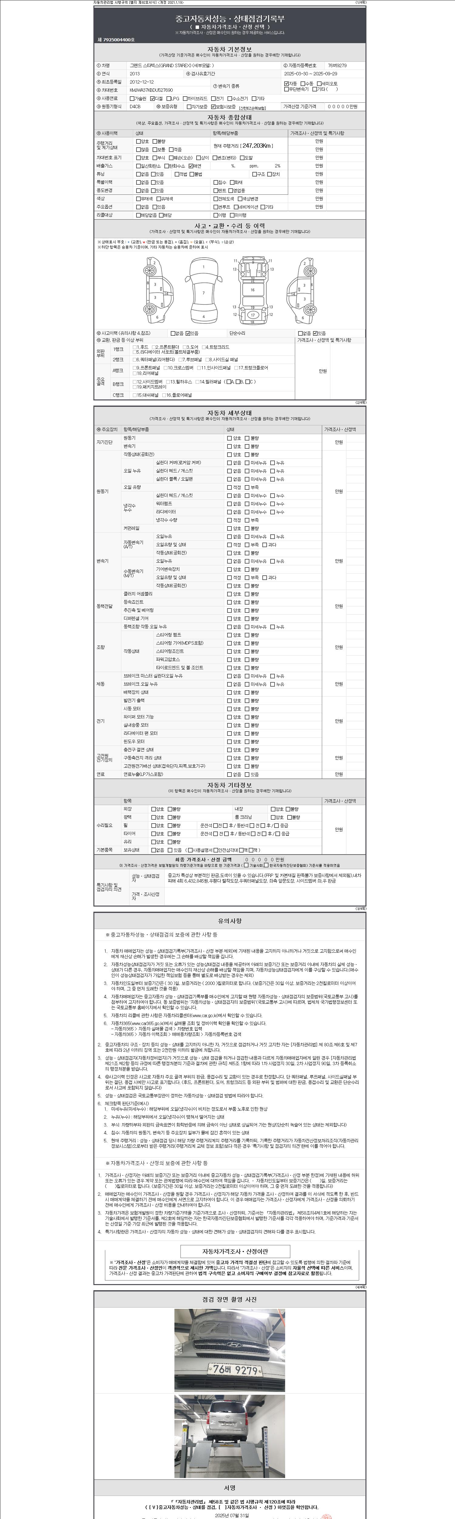 2. 차량 등록증이나 성능점검지 등을 상담자에게 요청및 확인하시고 사전에 미리 점검 하시기를 권유드립니다.
