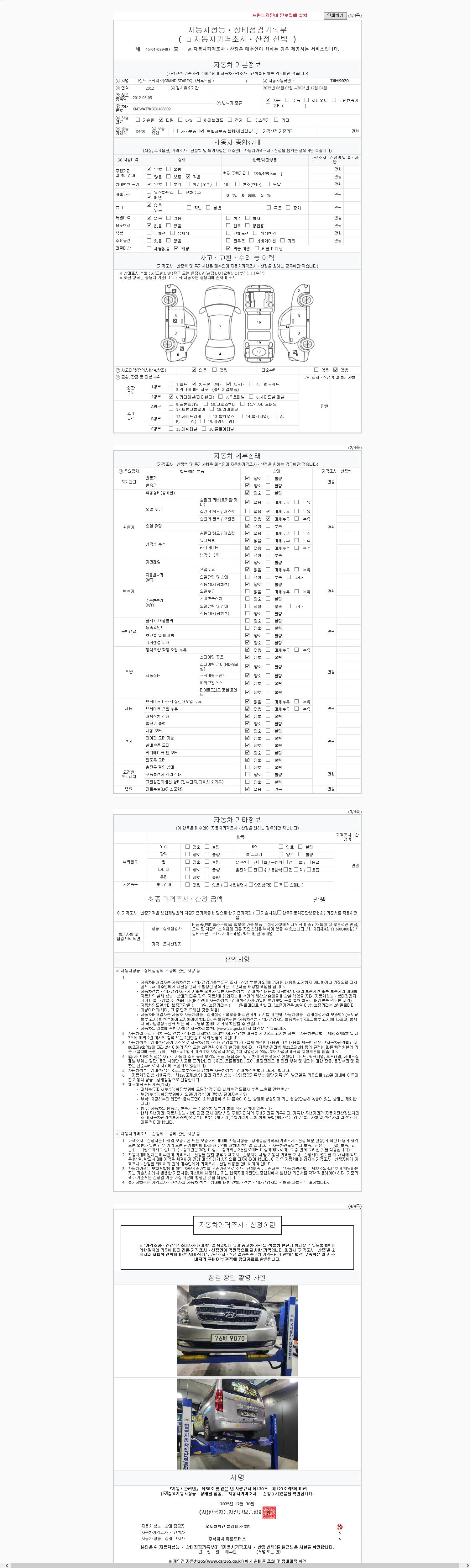 | 주행거리 | 196,499 km | 차량번호 | 76버9070 |