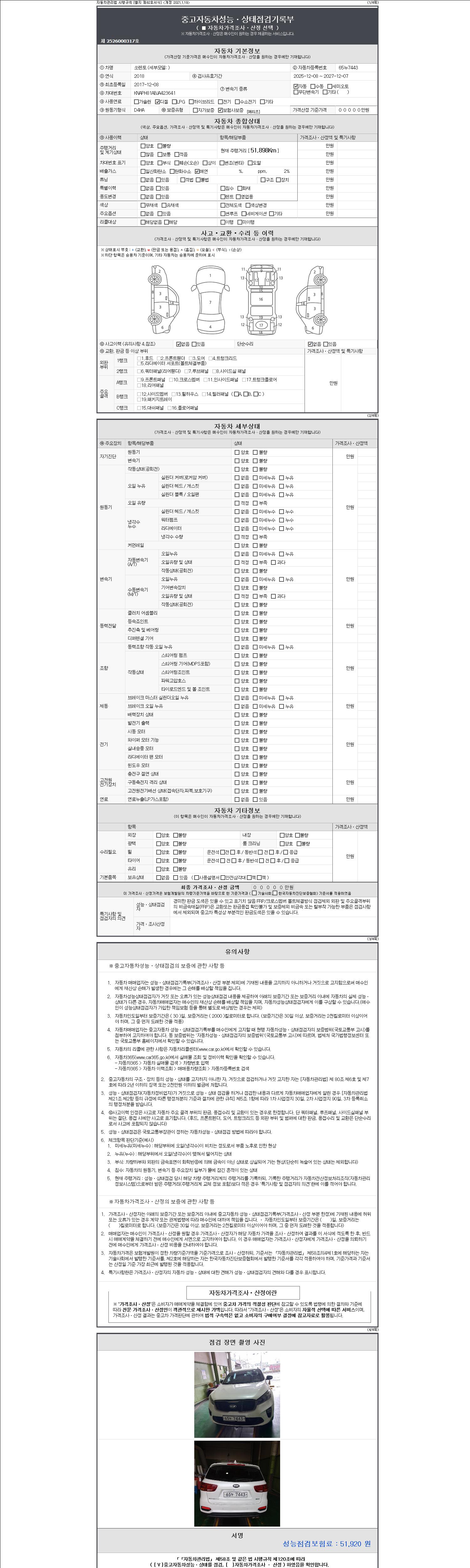 2. 차량 등록증이나 성능점검지 등을 상담자에게 요청및 확인하시고 사전에 미리 점검 하시기를 권유드립니다.
