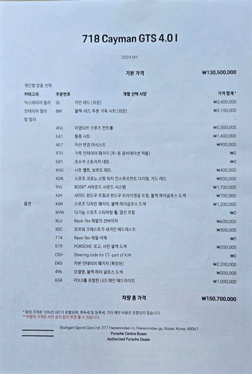 포르쉐 718 718 카이맨 (16년~) 4.0 GTS