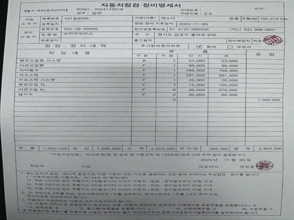 | 차량번호 | ----- | 246우9554 |