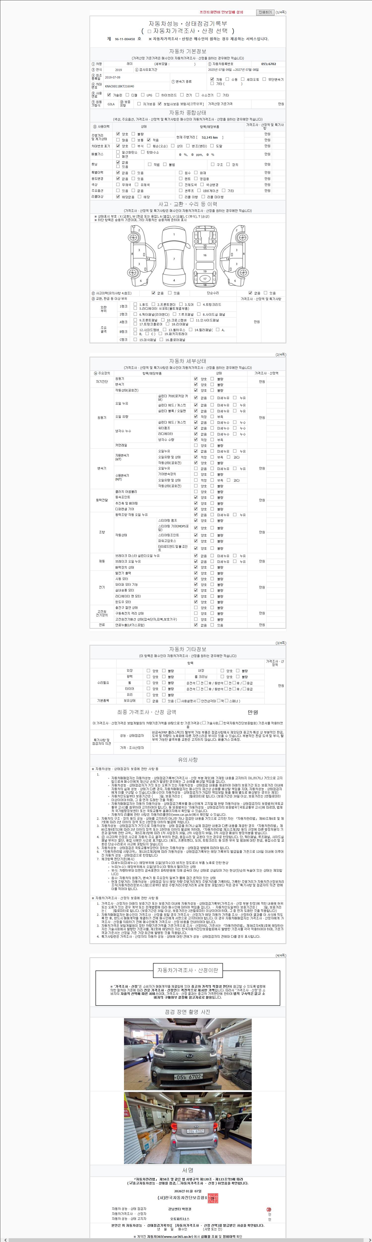 2. 차량 등록증이나 성능점검지 등을 상담자에게 요청및 확인하시고 사전에 미리 점검 하시기를 권유드립니다.