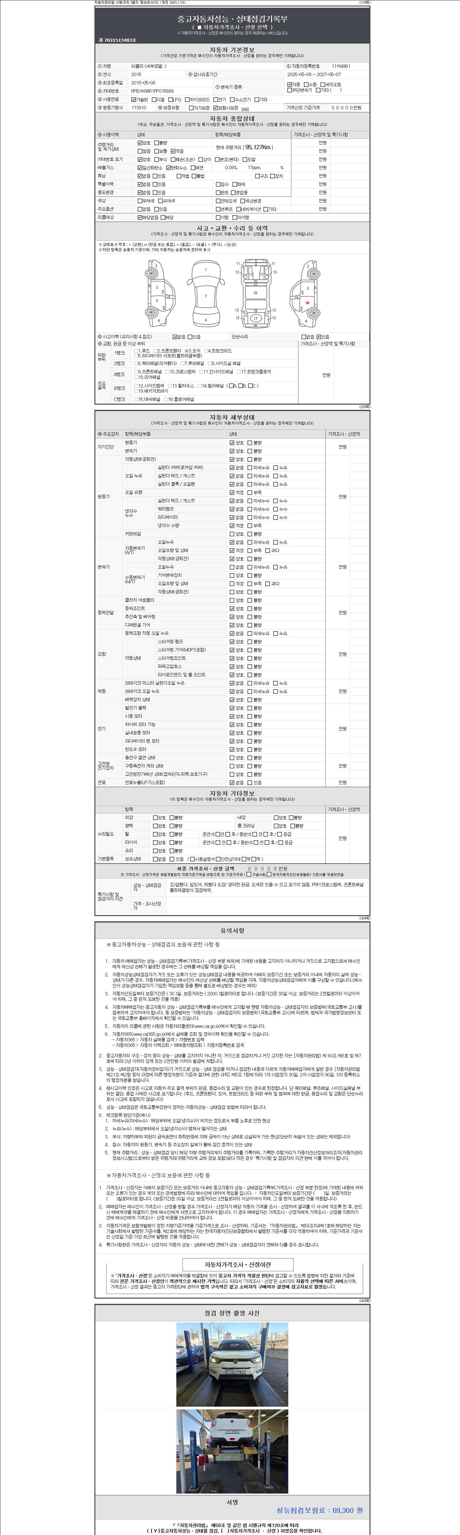 2. 차량 등록증이나 성능점검지 등을 상담자에게 요청및 확인하시고 사전에 미리 점검 하시기를 권유드립니다.