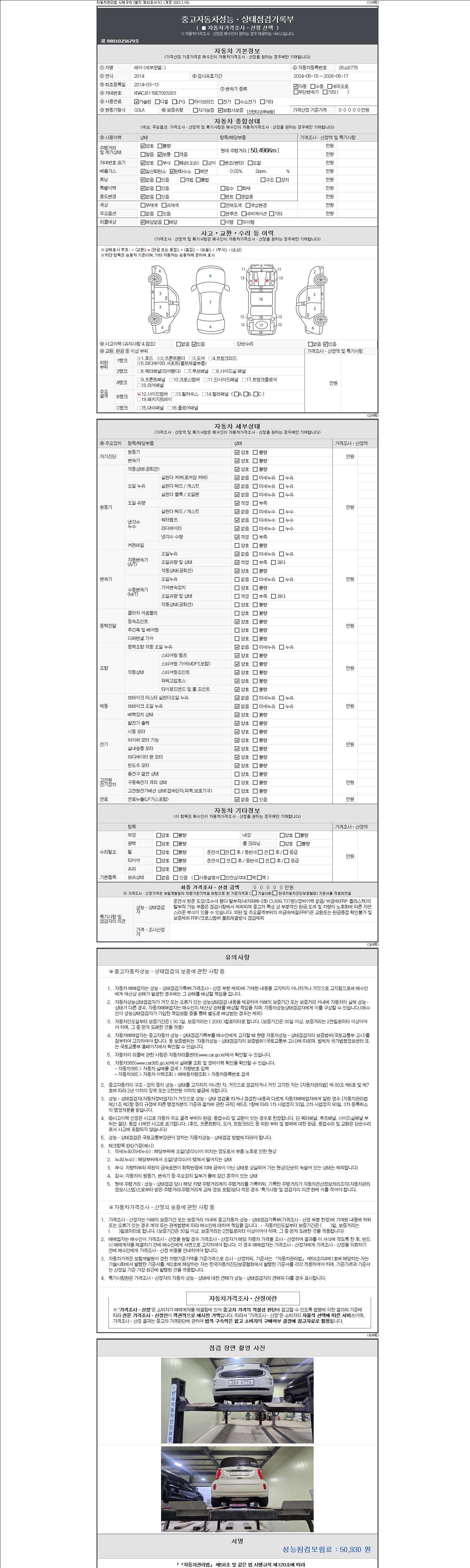2. 차량 등록증이나 성능점검지 등을 상담자에게 요청및 확인하시고 사전에 미리 점검 하시기를 권유드립니다.