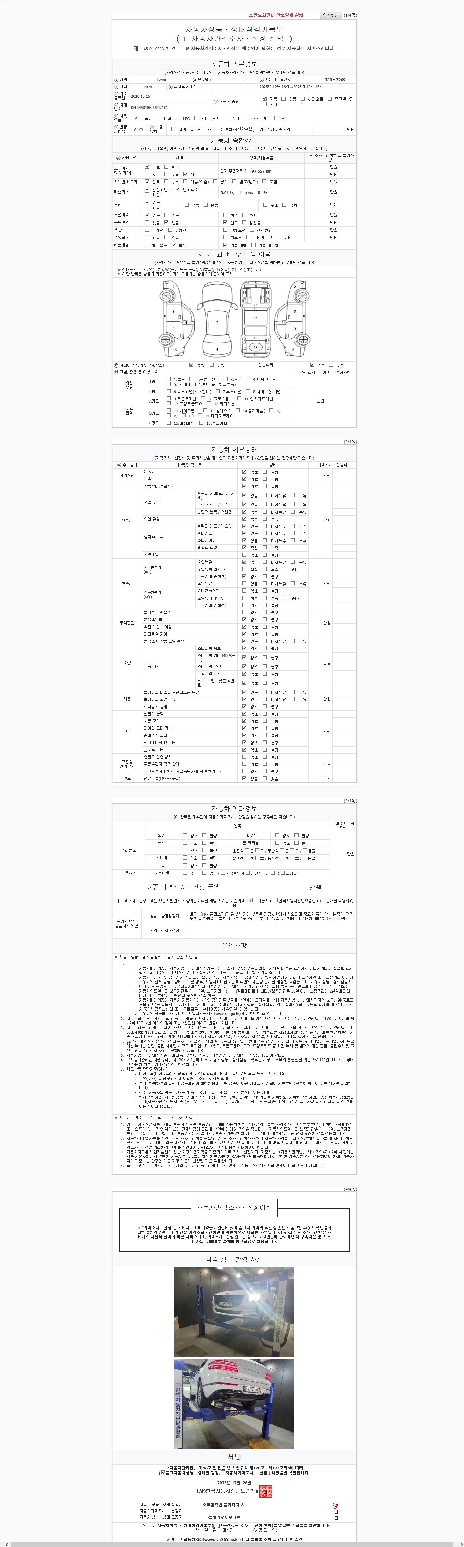 2. 차량 등록증이나 성능점검지 등을 상담자에게 요청및 확인하시고 사전에 미리 점검 하시기를 권유드립니다.