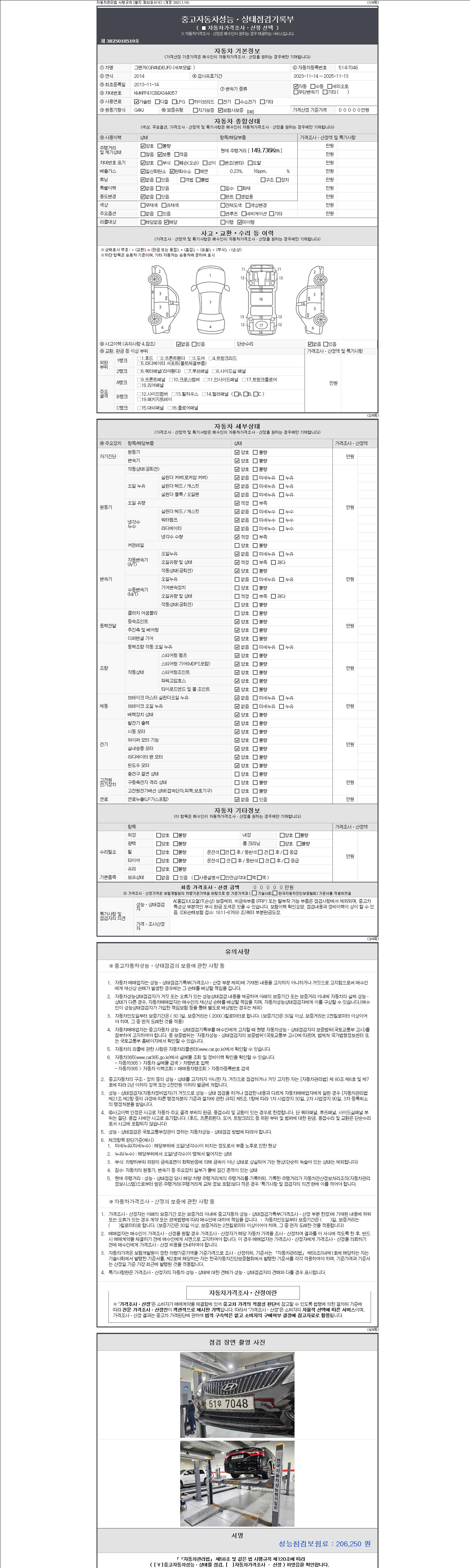 2. 차량 등록증이나 성능점검지 등을 상담자에게 요청및 확인하시고 사전에 미리 점검 하시기를 권유드립니다.