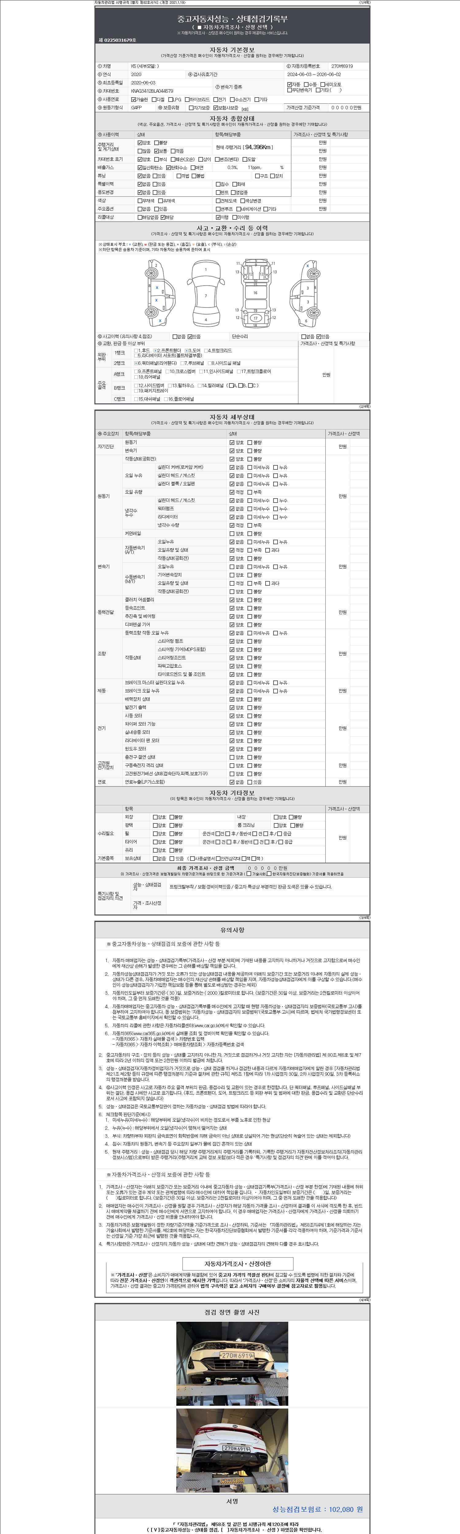 | 주행거리 | 94,396 km | 차량번호 | 270버6919 |