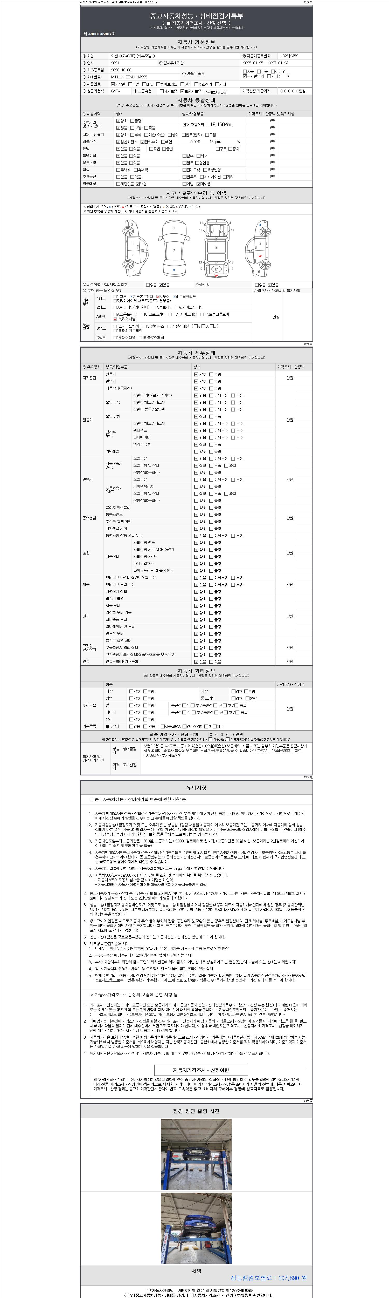 2. 차량 등록증이나 성능점검지 등을 상담자에게 요청및 확인하시고 사전에 미리 점검 하시기를 권유드립니다.