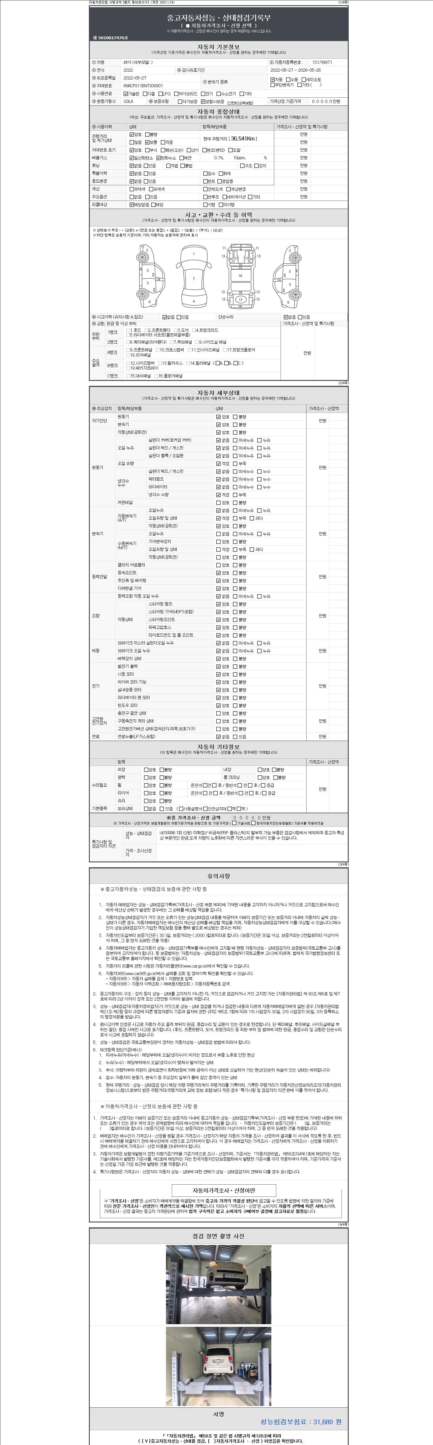 2. 차량 등록증이나 성능점검지 등을 상담자에게 요청및 확인하시고 사전에 미리 점검 하시기를 권유드립니다.