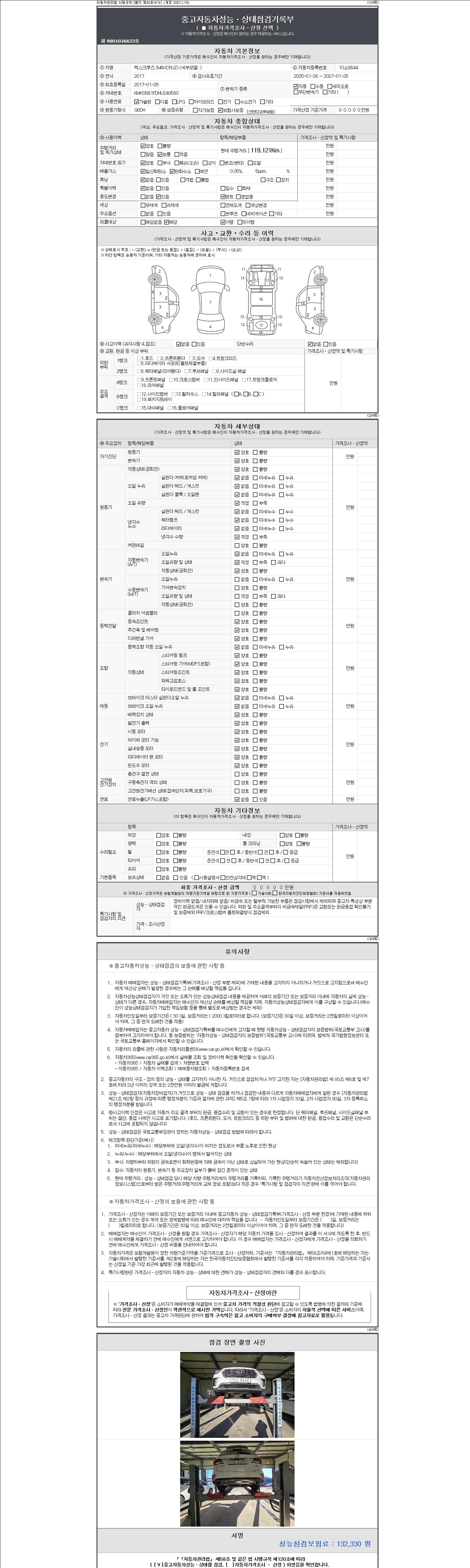 2. 차량 등록증이나 성능점검지 등을 상담자에게 요청및 확인하시고 사전에 미리 점검 하시기를 권유드립니다.