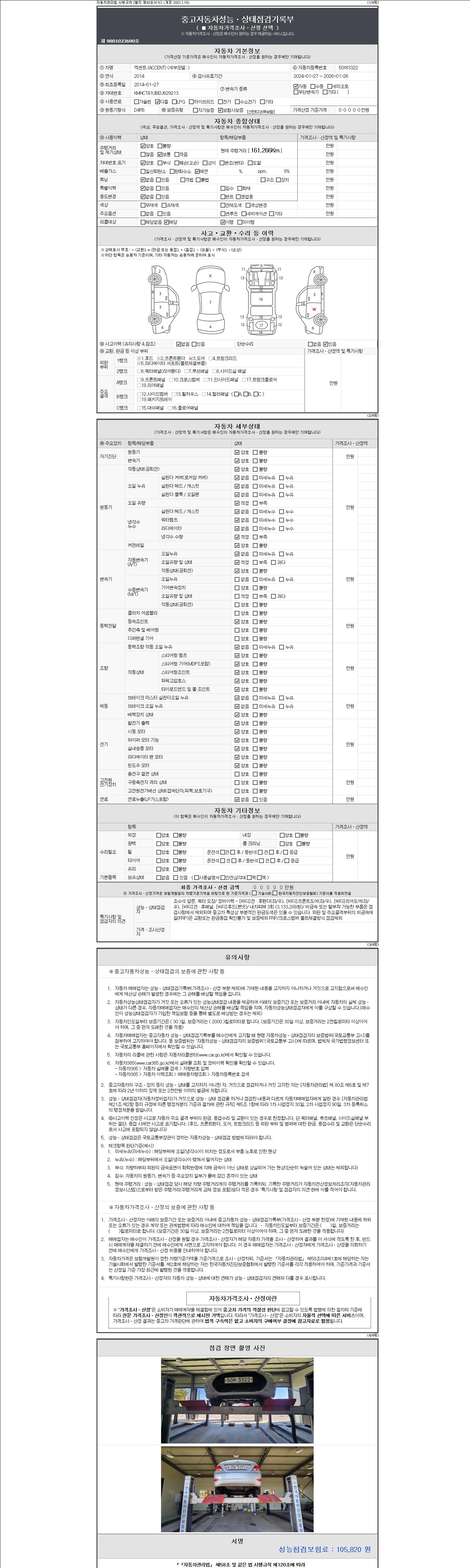 2. 차량 등록증이나 성능점검지 등을 상담자에게 요청및 확인하시고 사전에 미리 점검 하시기를 권유드립니다.
