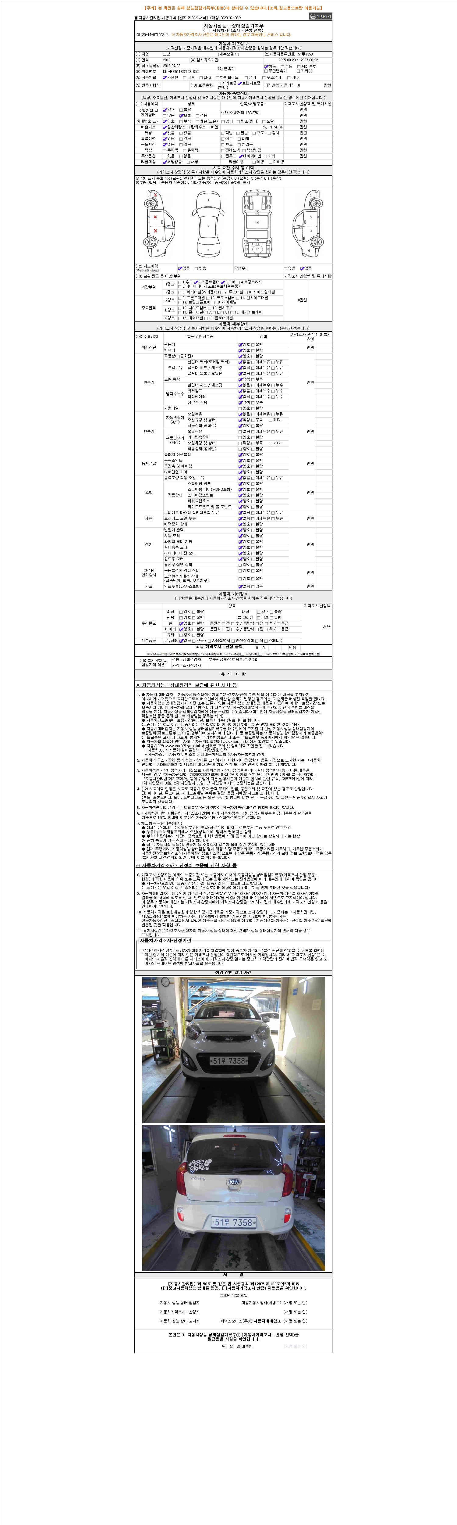 2. 차량 등록증이나 성능점검지 등을 상담자에게 요청및 확인하시고 사전에 미리 점검 하시기를 권유드립니다.