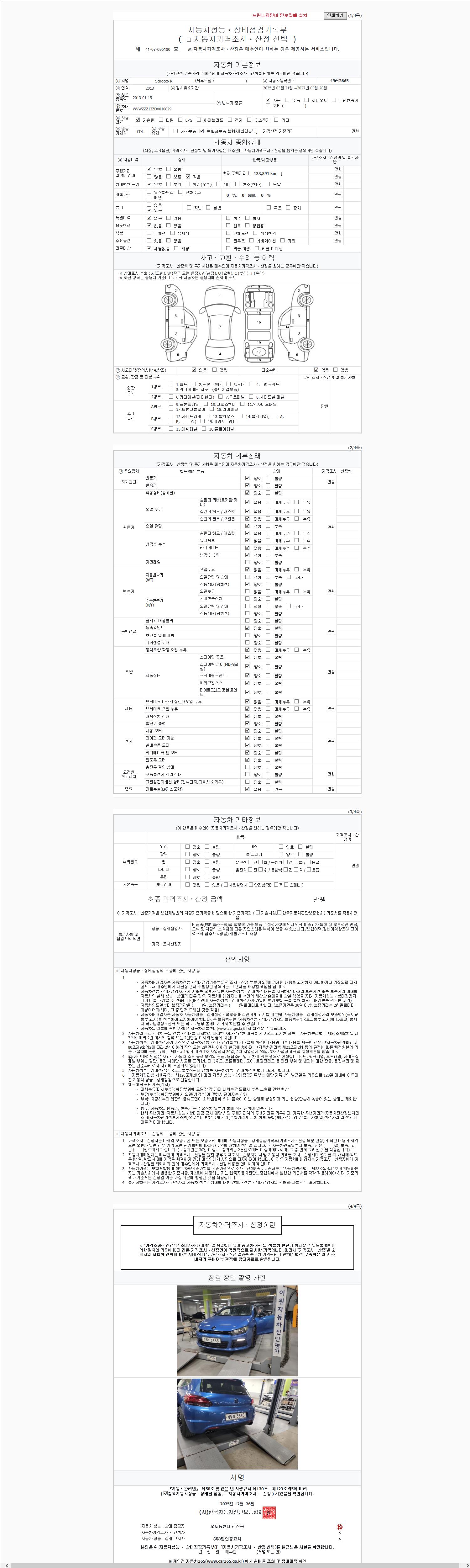 2. 차량 등록증이나 성능점검지 등을 상담자에게 요청및 확인하시고 사전에 미리 점검 하시기를 권유드립니다.