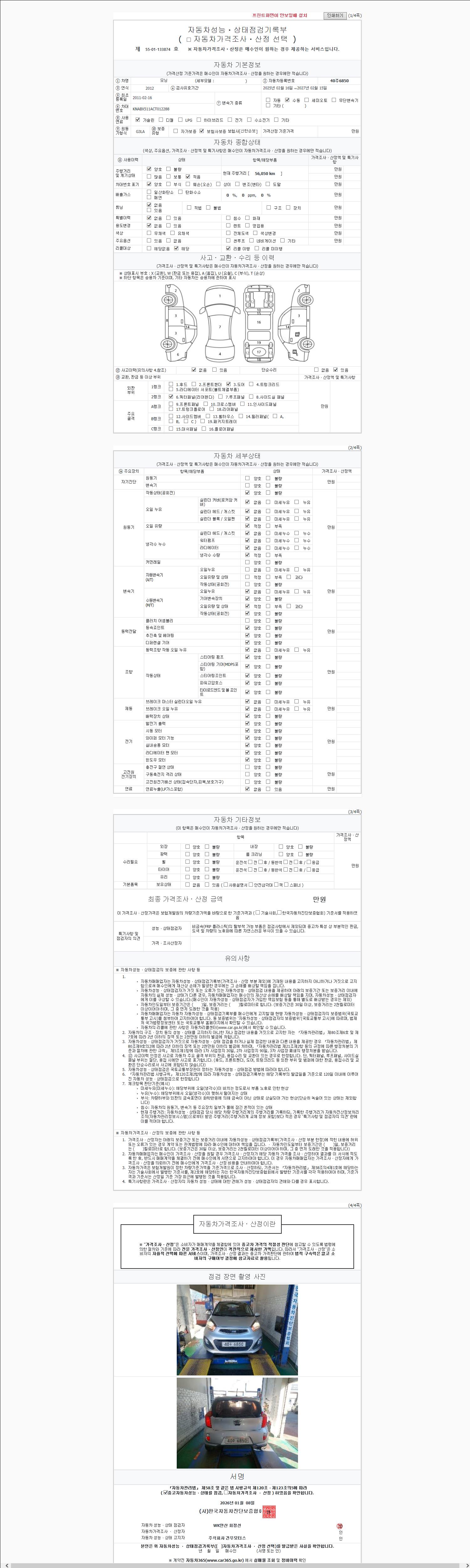 2. 차량 등록증이나 성능점검지 등을 상담자에게 요청및 확인하시고 사전에 미리 점검 하시기를 권유드립니다.