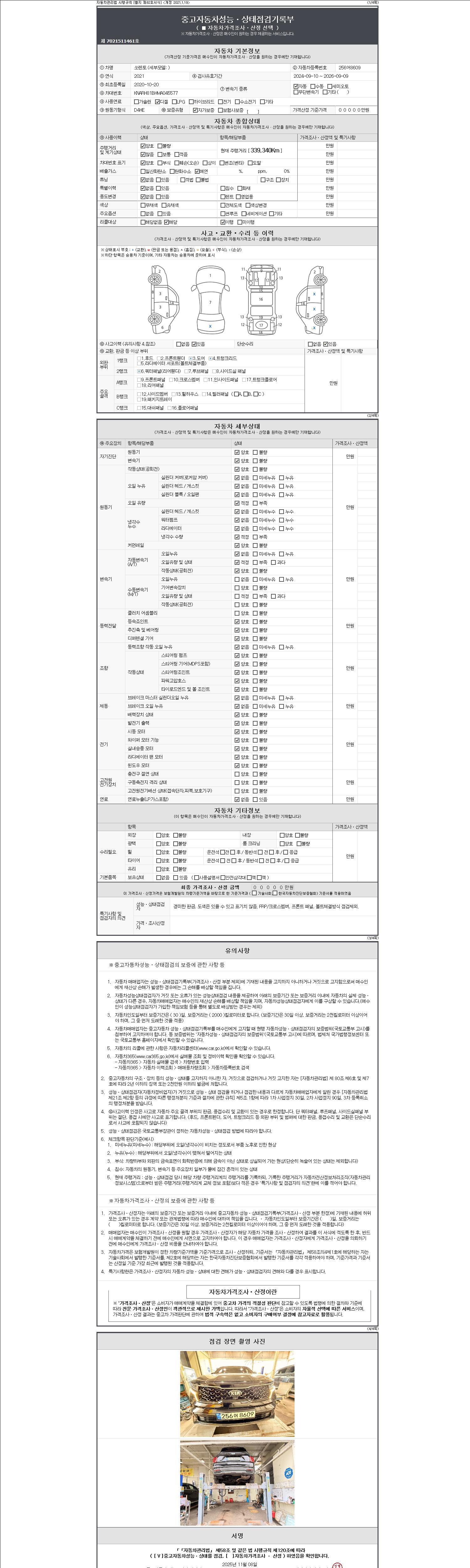 -중고자동차 매매업자를 통해 차량을 구입하실 경우 반드시 "중고자동차 성능, 상태점검 기록부"를 교뷰 받으셔야 하며, 매매업자는 반드시 의무 교부 하여야 압니다.