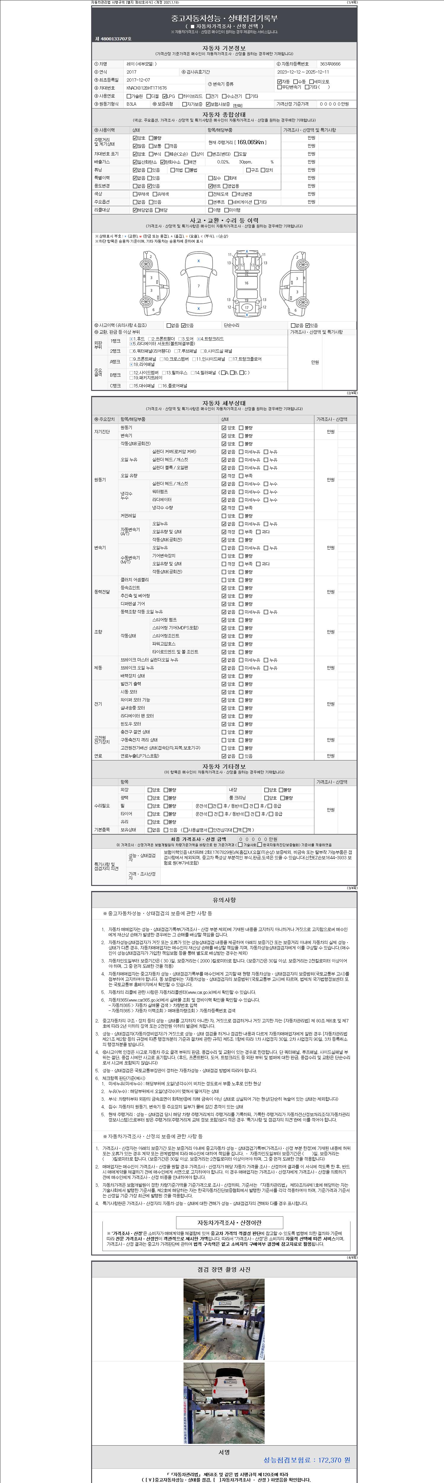주행거리 169,065 km 차량번호 363무8666