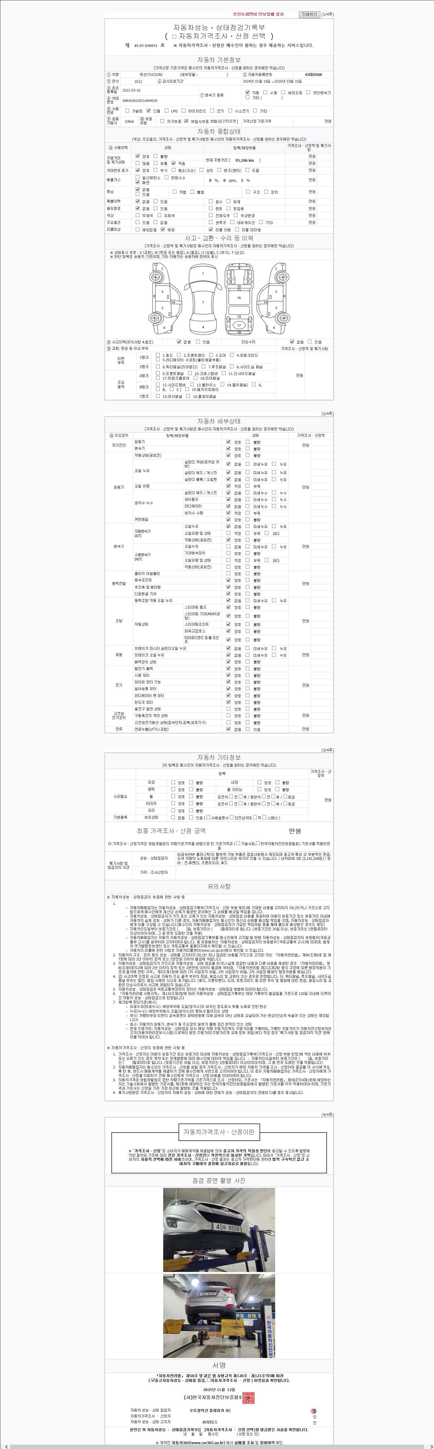 2. 차량 등록증이나 성능점검지 등을 상담자에게 요청및 확인하시고 사전에 미리 점검 하시기를 권유드립니다.